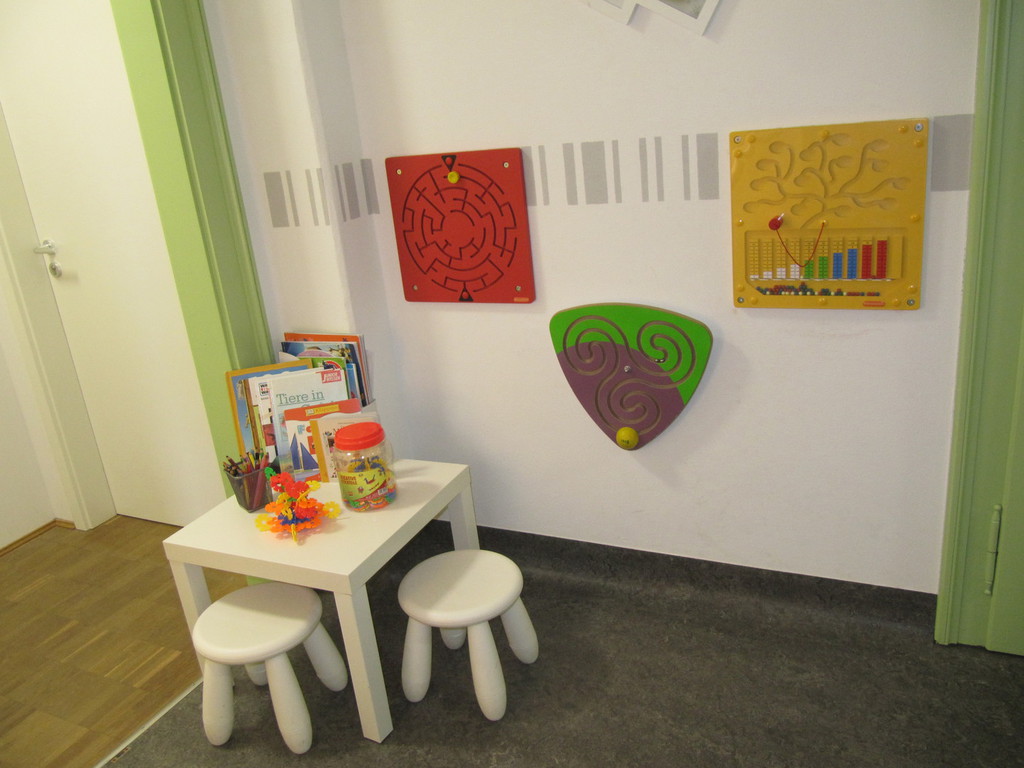 Sie besteht aus drei modern gestalteten Therapieräumen und einem einladenden Wartebereich.
