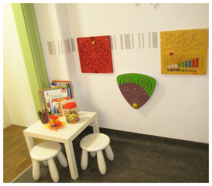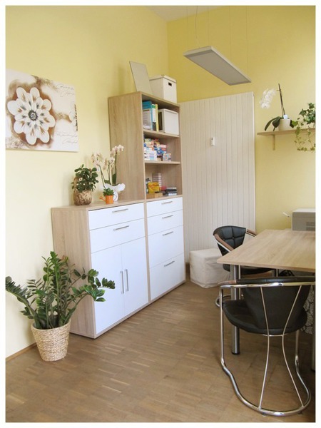 Sie besteht aus drei modern gestalteten Therapieräumen und einem einladenden Wartebereich.